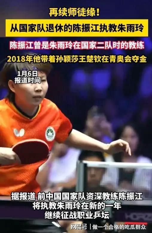 2025年底,陈振江从国家队光荣退休,虽未出现在新周期教练名单中,但他并未告别热爱的乒乓事业,转而执教朱雨玲,在另一片赛场继续耕耘。这种"换岗不换志"的坚守,正是国乒精神的生动写照——无论身处何种岗位,都始终为乒乓事业添砖加瓦。